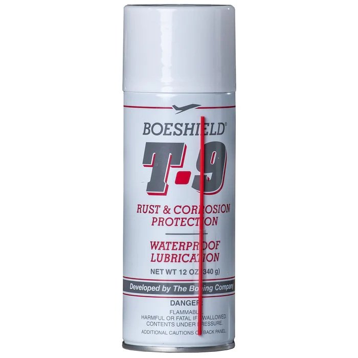 The Boeshield T-9® rust preventative spray uses a unique formulation of solvent carrier and paraffin wax coating engineered to penetrate crevices deeply, displace moisture, dissolve minor corrosion, and leave a clean, waxy coating with lasting durability-without using Teflon, silicone, fluorocarbons, MEK, or acetone.
